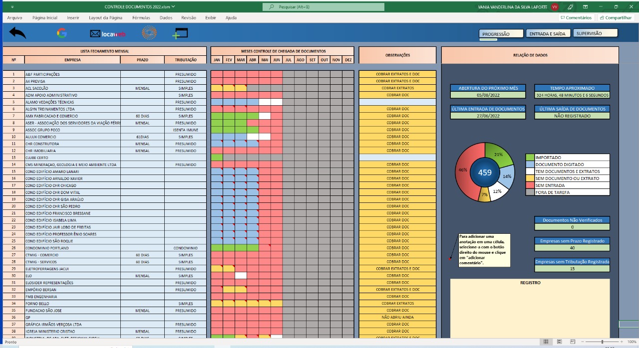 Atualização rotineira de banco de dados, organização de documentos e entrada de dados fiscais.